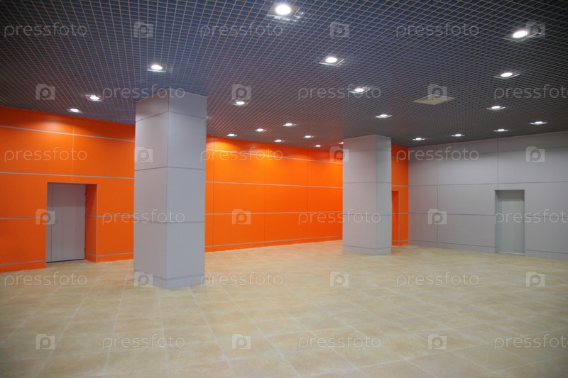 Современный интерьер зала с колоннами