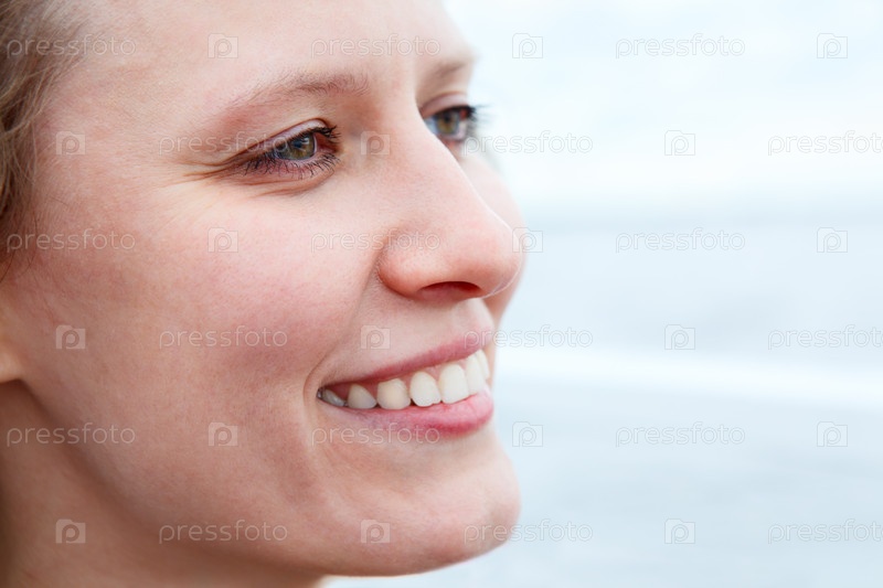 Красивая женщина с милой улыбкой в профиль