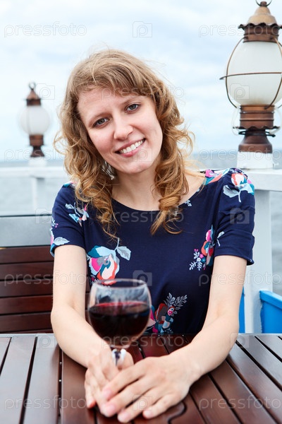 Женщина в платье сидит в кафе на круизном судне