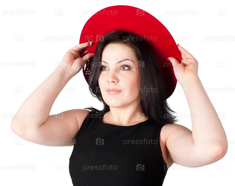 Молодая красивая женщина в красной шляпе