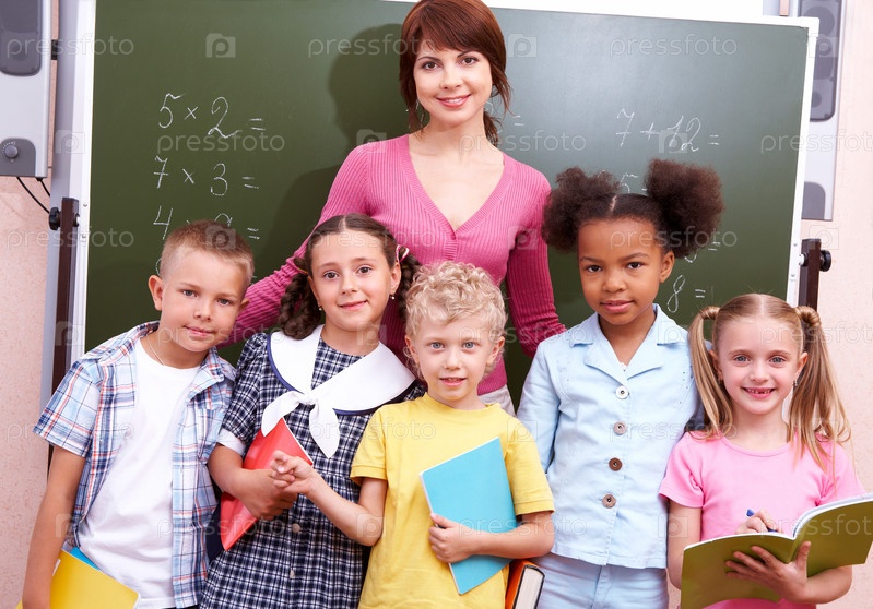 Группа детей с учителем у доски