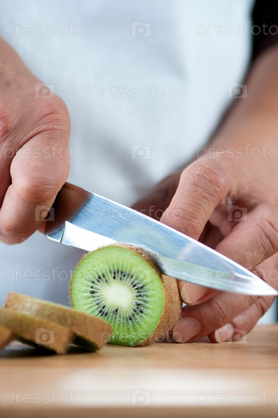 Женские руки режут киви, крупный план