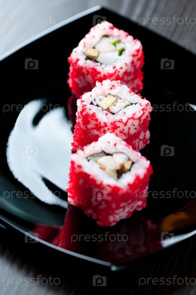 Набор роллов Калифорния на черной тарелке