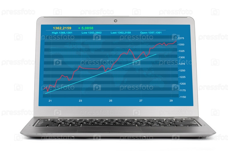Финансовый прогрессивный график на мониторе ноутбука