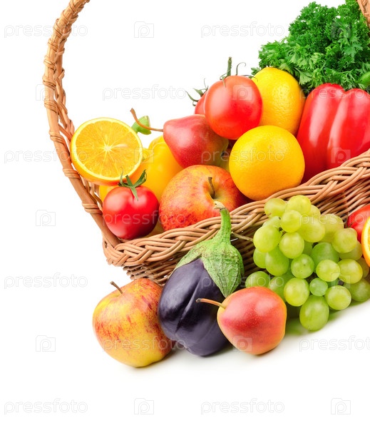 Фрукты и овощи в плетеной корзине