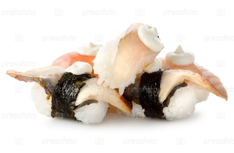 Рыбные суши, изолированные на белом фоне