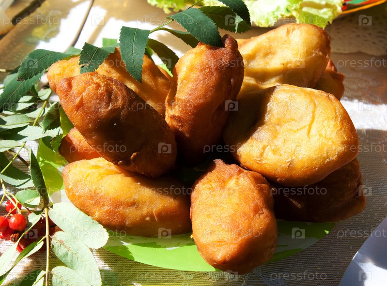 Свежие пирожки на тарелке на празднике урожая под открытым небом