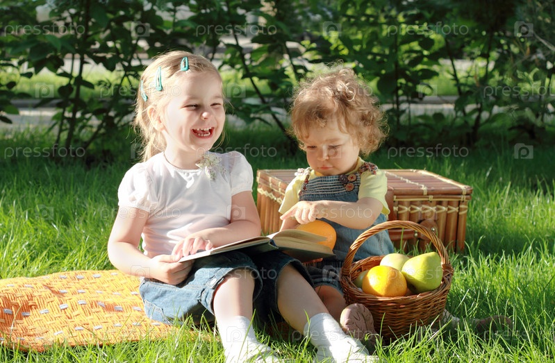 Две маленькие девочки на пикнике