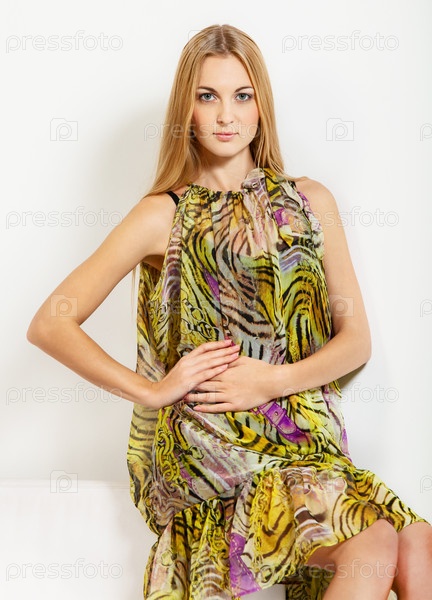 Красивая блондинка в студии