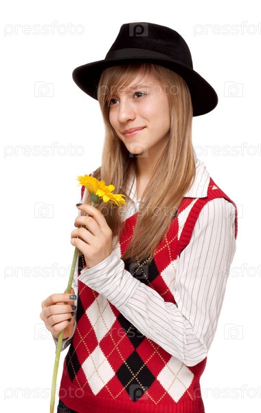 Девушка с цветком в черной шляпе