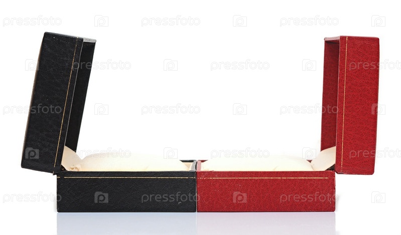 Черная и красная подарочные коробки на белом фоне