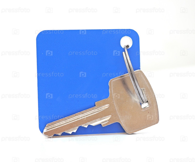 Ключ с пустым брелоком на белом фоне