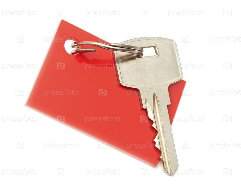Ключ с пустым брелоком на белом фоне