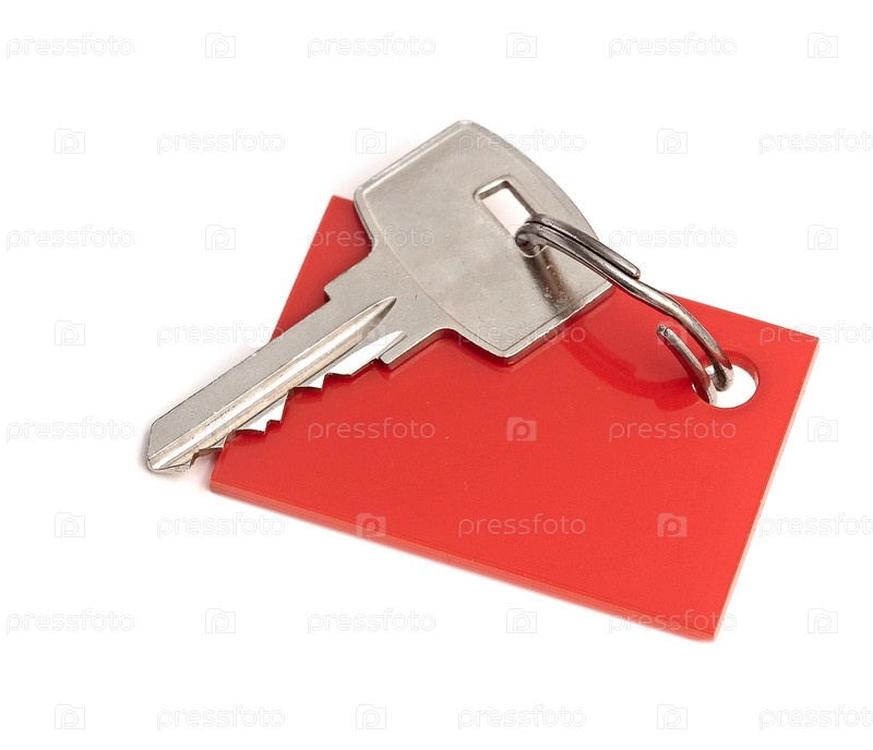 Ключ с пустым брелоком на белом фоне