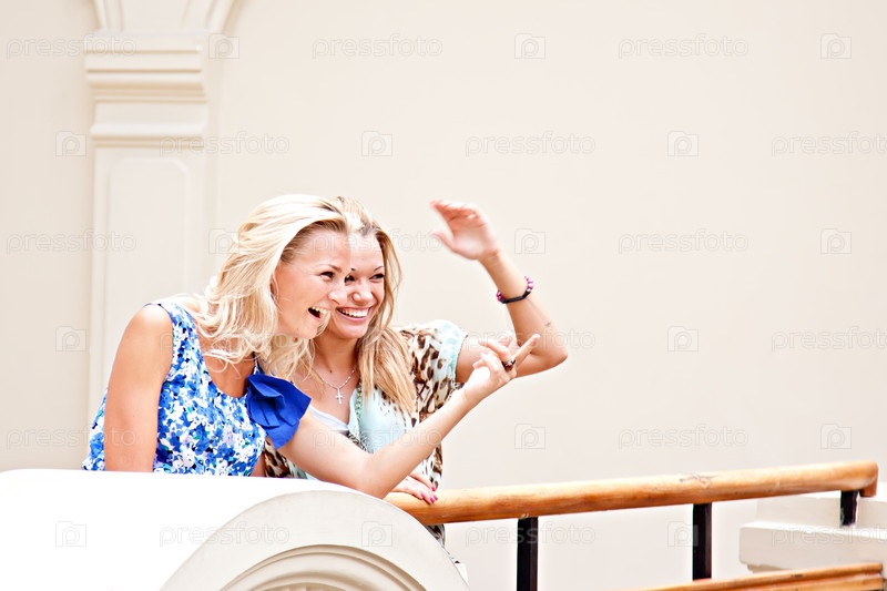 Две молодые красивые женщины в торговом центре