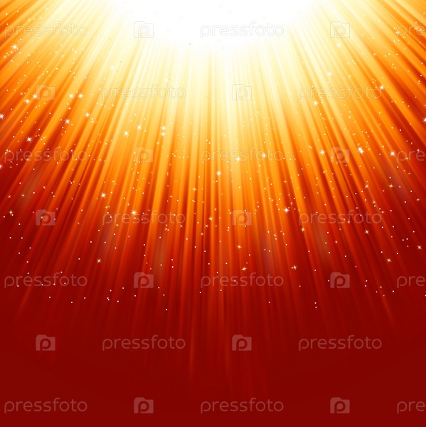 Звезды падают на золотые светящиеся лучи. EPS 8
