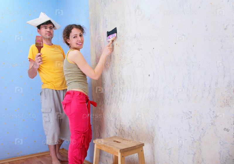 Молодая пара делает ремонт