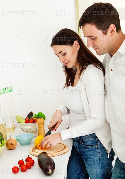 Портрет счастливой пары, готовящей пищу