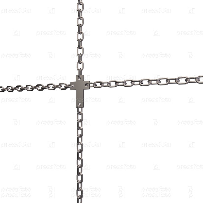 Христианский крест на металлических цепях