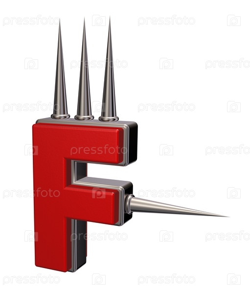 Буква F с металлическими шипами на белом фоне - 3d иллюстрация