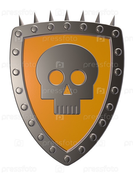 Металлический экран с символом черепа на белом фоне - 3d иллюстрация