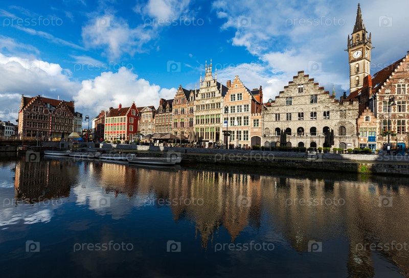 Канал Гент и улица граслей на закате. Гент, Бельгия