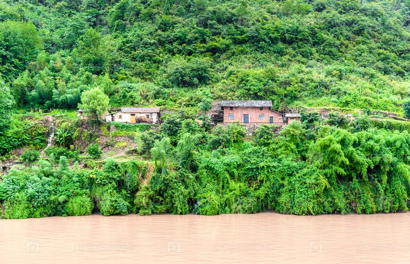 Путешествие по реке Янцзы с прекрасным видом на горы и деревни