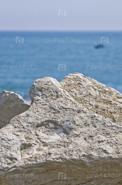 Камни известняка на фоне синего моря