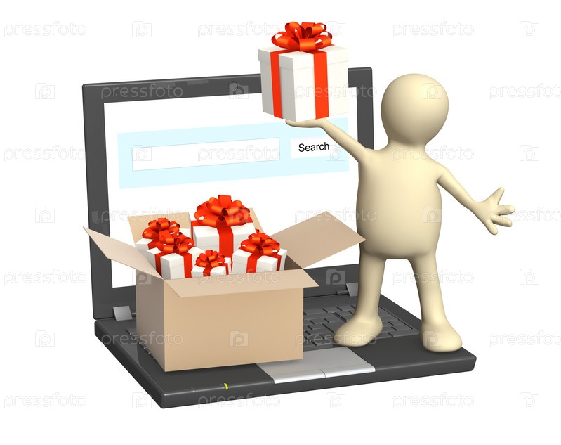 Человечек с ноутбуком и подарками