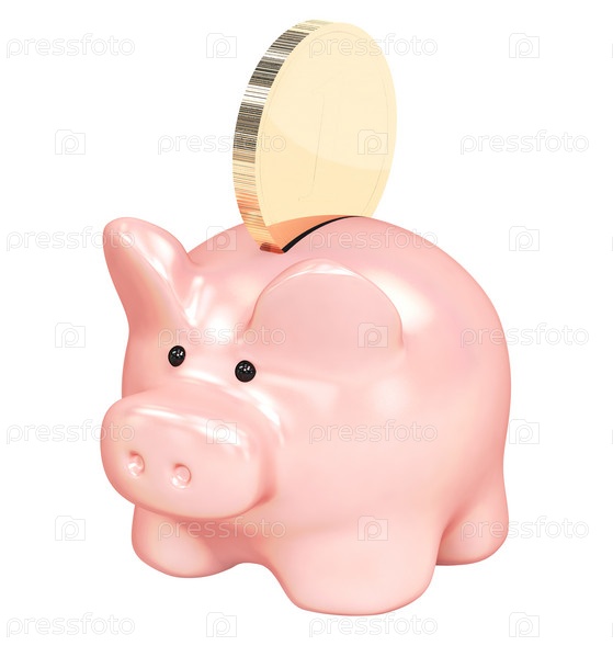 Свинья-копилка с монетой
