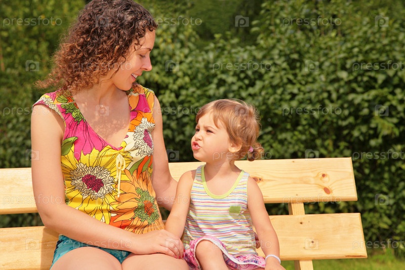 Мама и ребенок на скамейке в парке