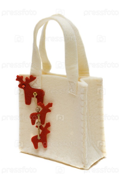Белый подарочный пакет из войлока на белом фоне