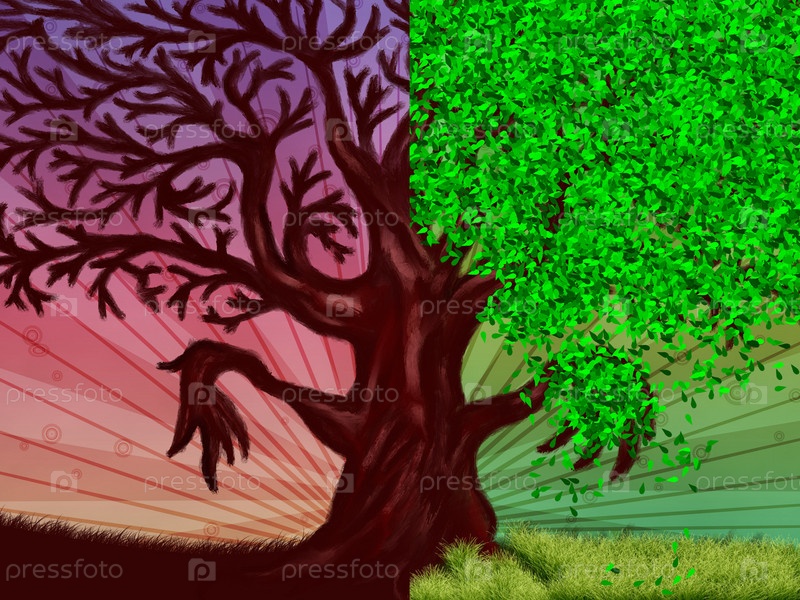 Дерево с листьями и голыми ветками