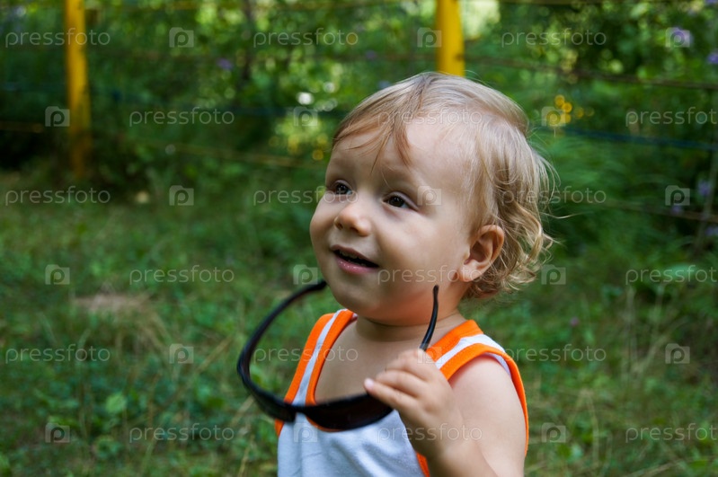 Забавный маленький мальчик на прогулке
