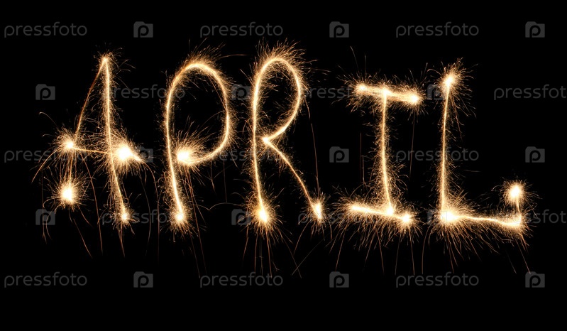 Слово "апрель" из бенгальских огней на черном фоне