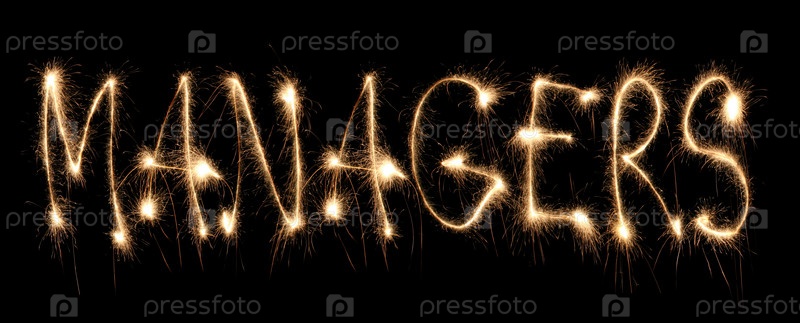 Слово "менеджеры" из бенгальских огней на черном фоне