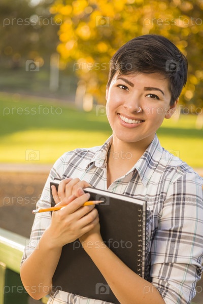 Портрет студентки смешанной расы с книгами