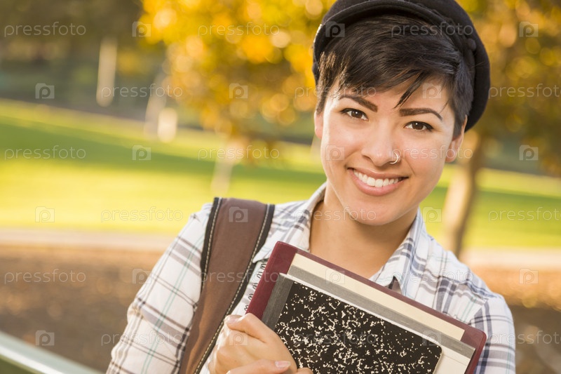 Портрет студентки смешанной расы с книгами