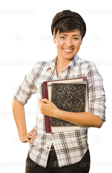 Портрет студентки смешанного происхождения с книгами, изолировано
