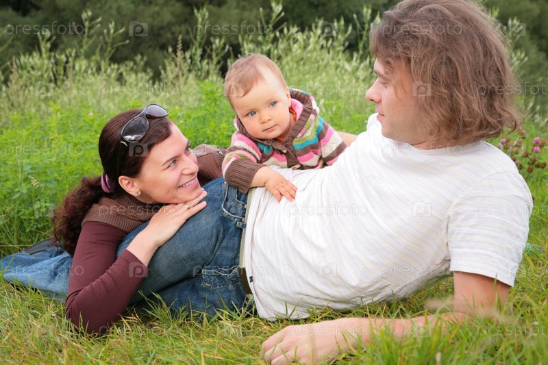 Родители отдыхают с ребенком на природе