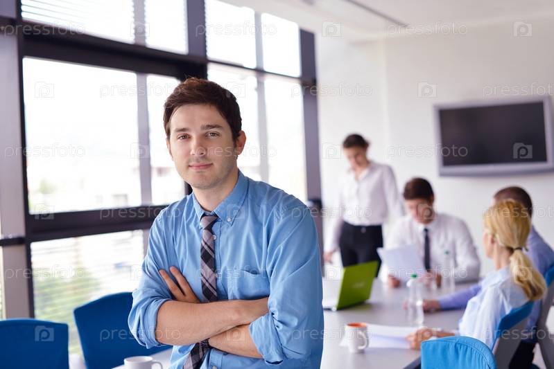Бизнесмен на встрече с коллегами в офисе