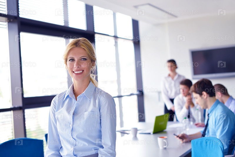 Бизнес-леди с сотрудниками в офисе