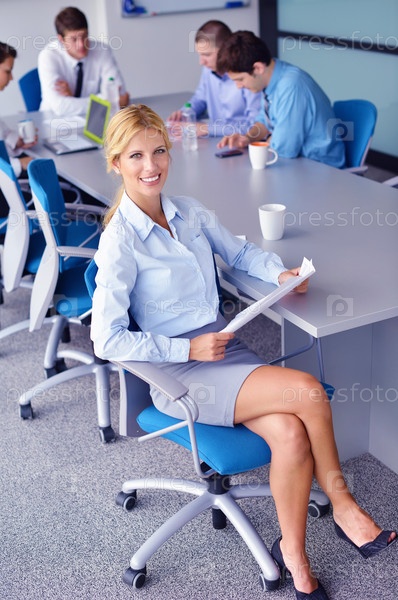 Бизнес-леди с сотрудниками в офисе