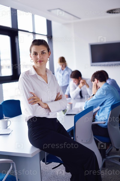 Деловая женщина и ее сотрудники в фоновом режиме в офисе