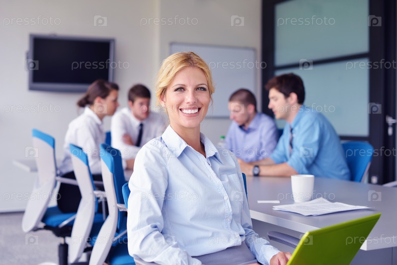 Деловая женщина и ее сотрудники в фоновом режиме в офисе