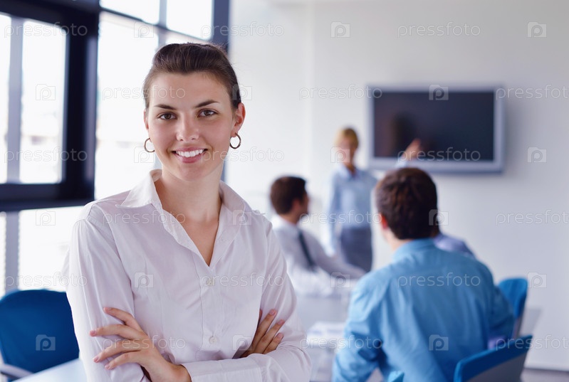 Бизнес-леди с сотрудниками в офисе