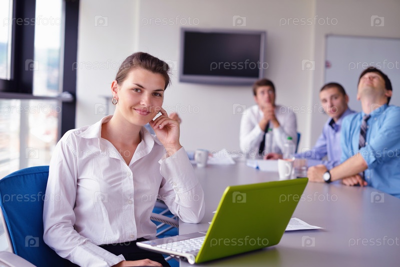 Деловая женщина и ее сотрудники в фоновом режиме в офисе