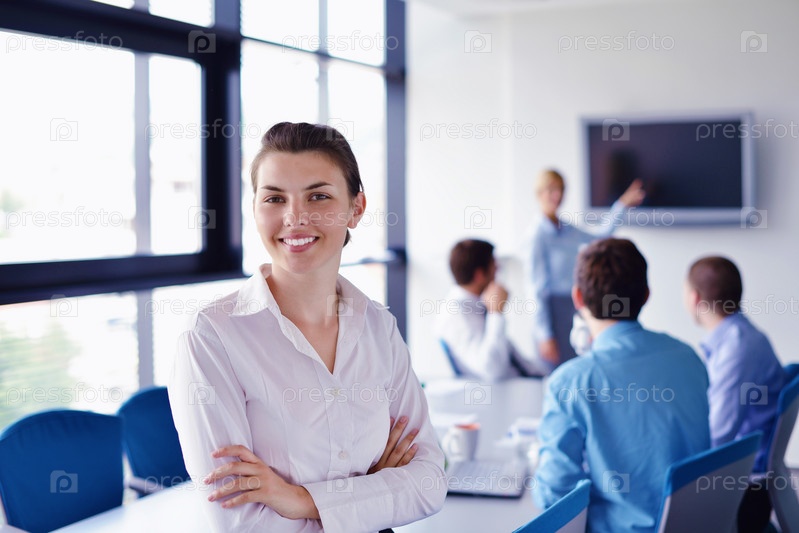 Бизнес-леди с сотрудниками в офисе