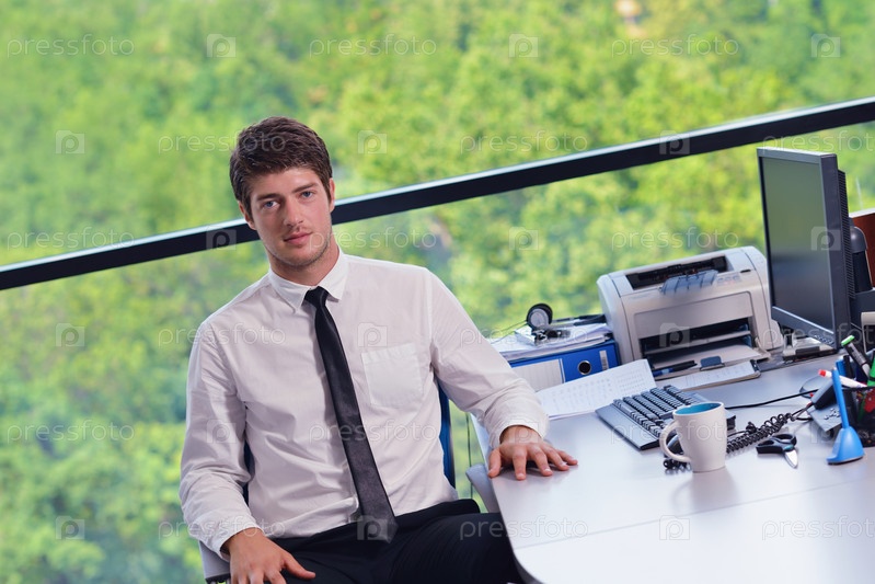 Счастливый молодой бизнесмен в офисе