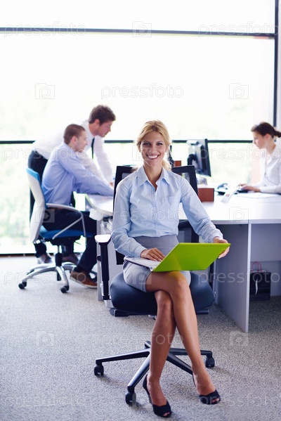 Бизнес-леди с сотрудниками в офисе